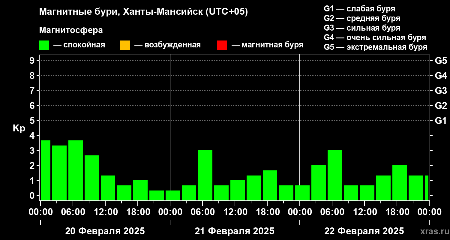 Магнитные бури в Ханты-Мансийске — 22 февраля 2025 года