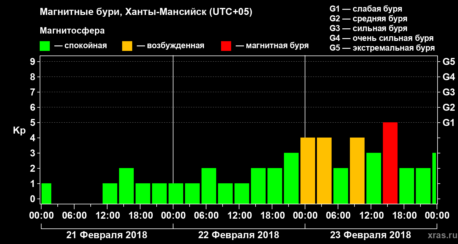 Магнитные бури в Ханты-Мансийске 23 февраля 2018 года