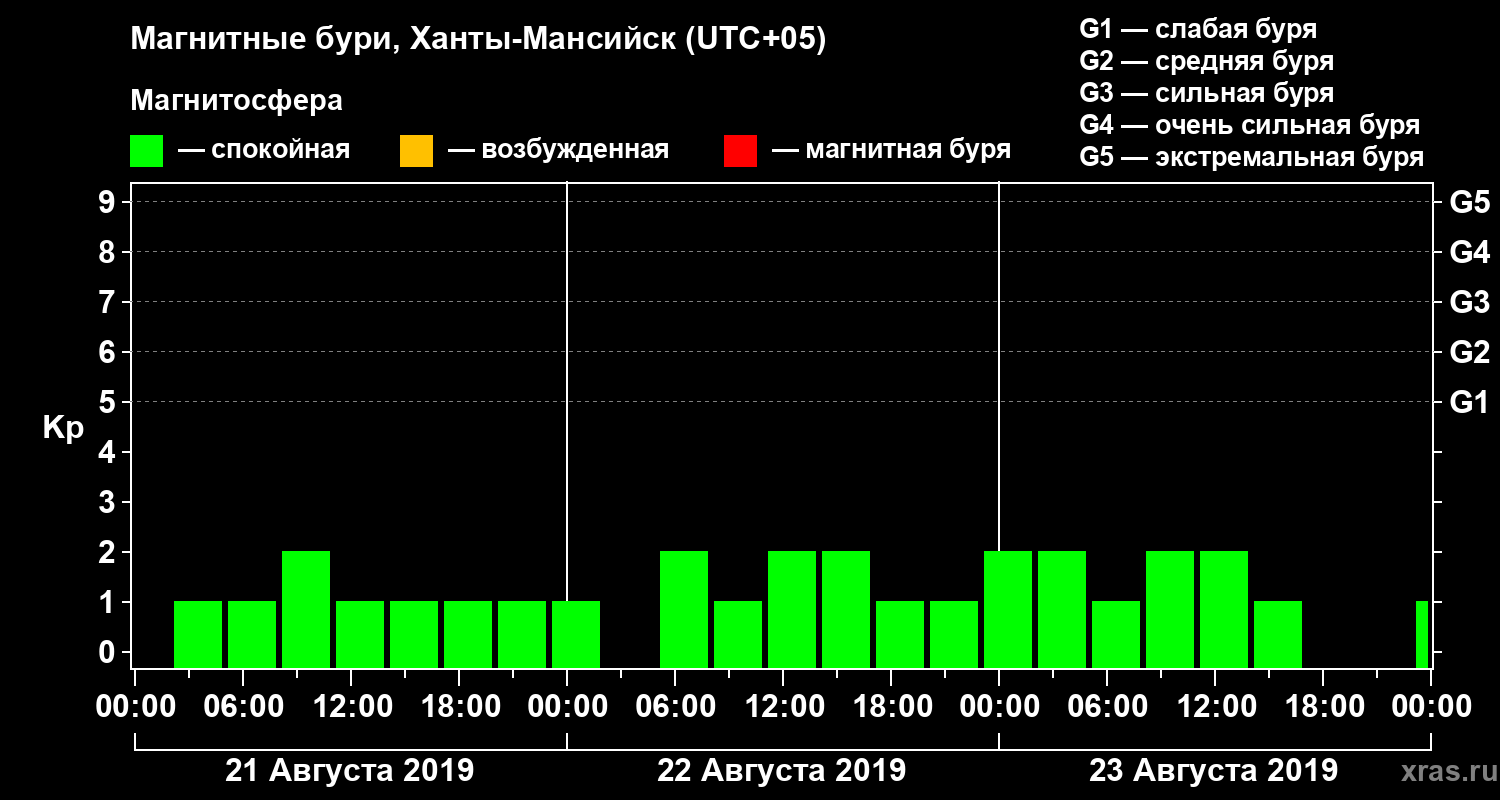 Магнитные бури в Ханты-Мансийске 23 августа 2019 года