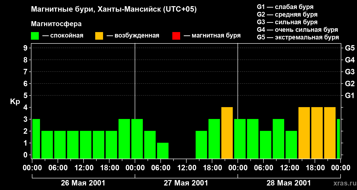 Магнитные бури в Ханты-Мансийске 28 мая 2001 года