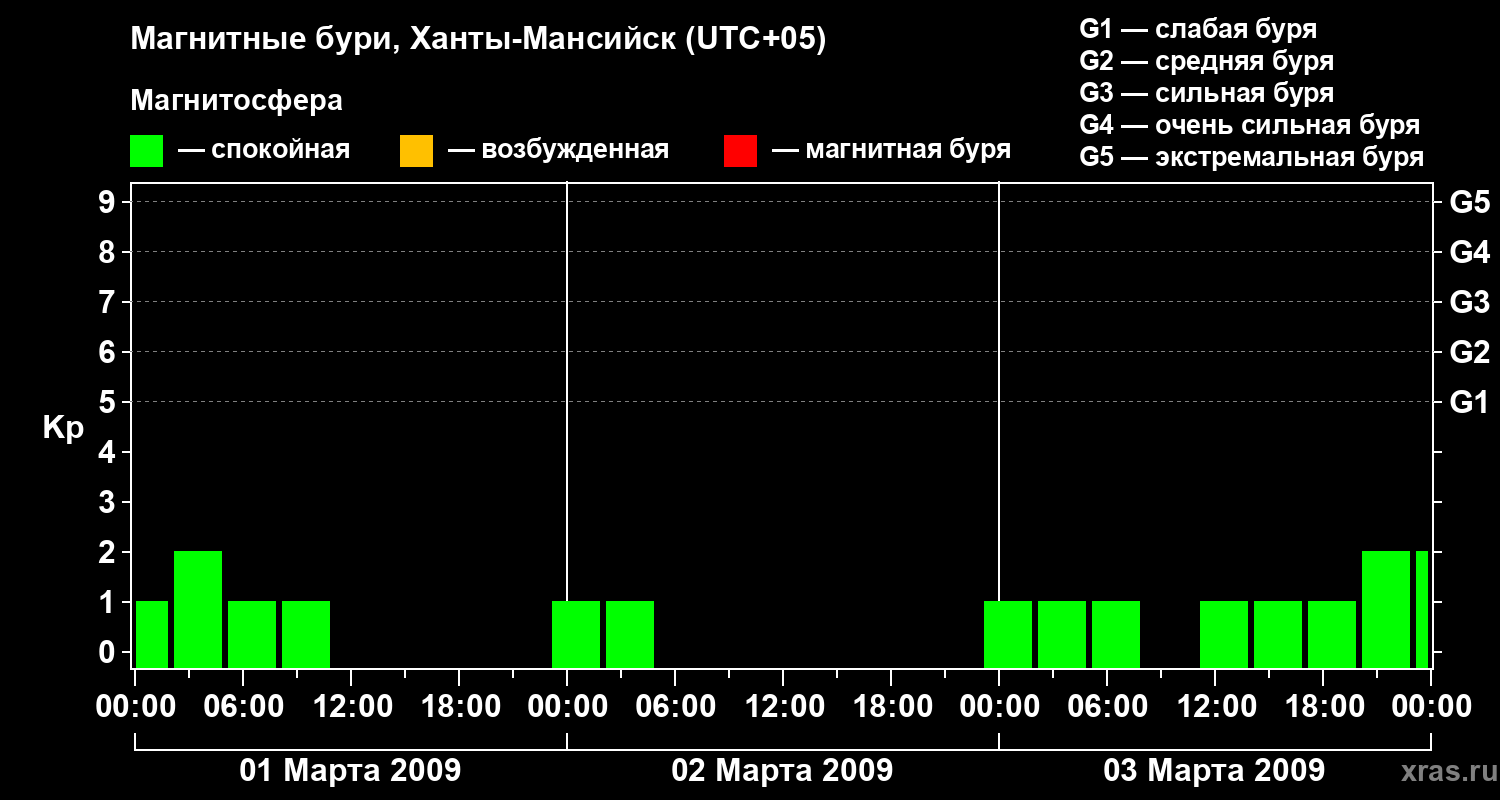 Магнитные бури в Ханты-Мансийске в марте 2009 года