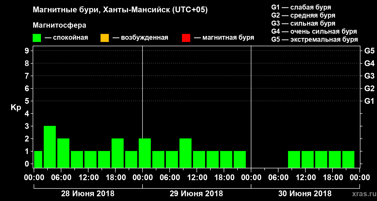 Магнитные бури в Ханты-Мансийске — 30 июня 2018 года