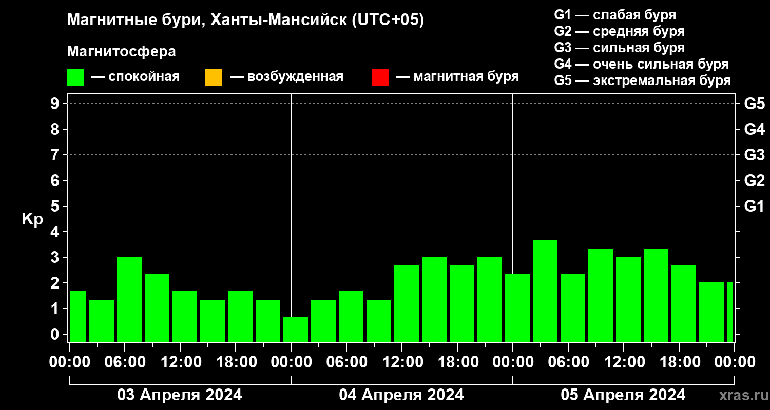 Магнитные бури в Ханты-Мансийске — 5 апреля 2024 года