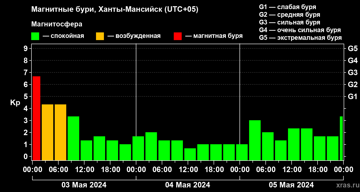 Магнитные бури в Ханты-Мансийске — 5 мая 2024 года