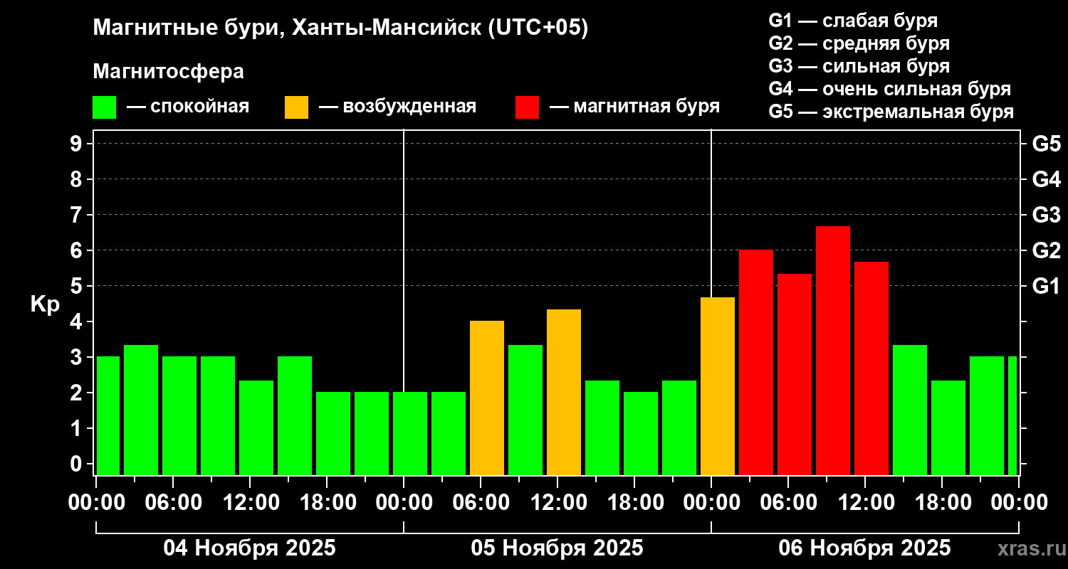 Магнитные бури в Ханты-Мансийске — 6 ноября 2025 года