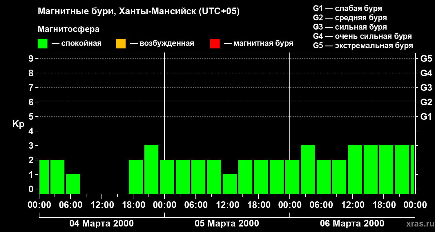 Магнитные бури в Ханты-Мансийске 6 марта 2000 года