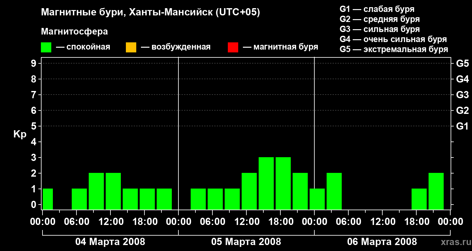 Магнитные бури в Ханты-Мансийске в марте 2008 года