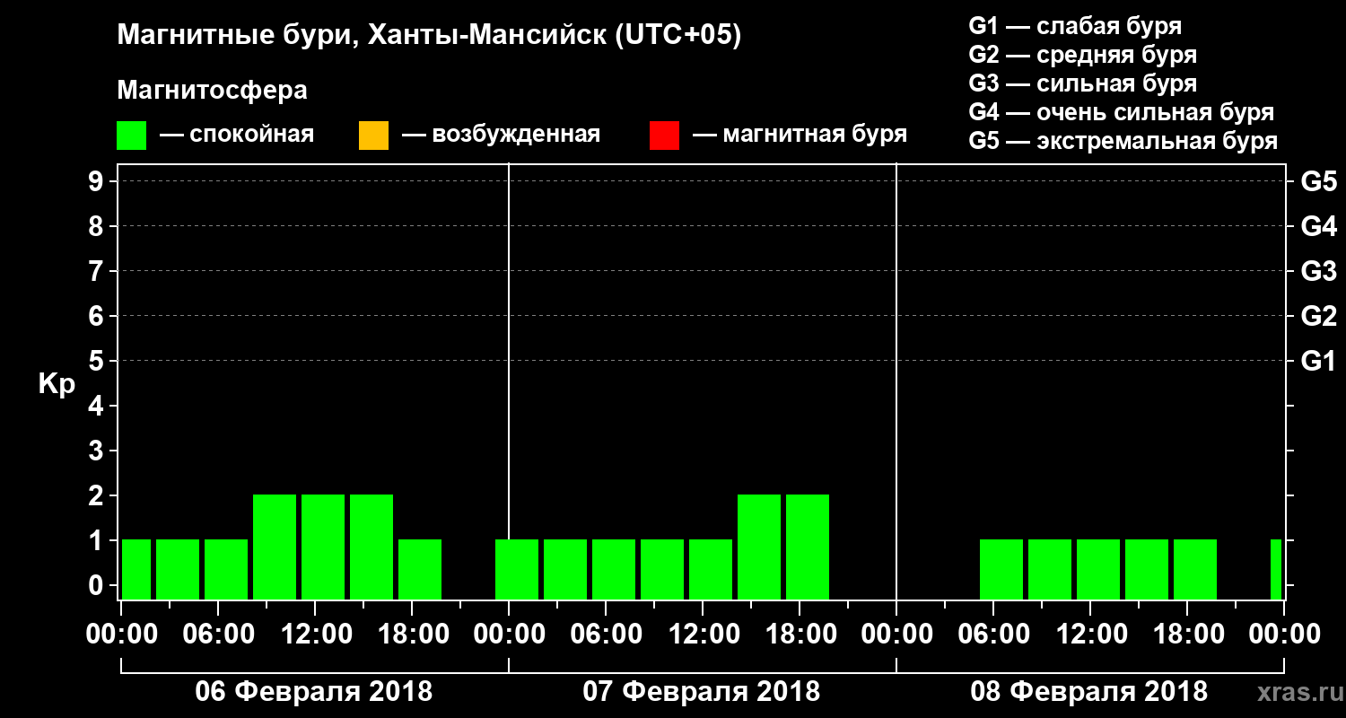 Магнитные бури в Ханты-Мансийске 8 февраля 2018 года