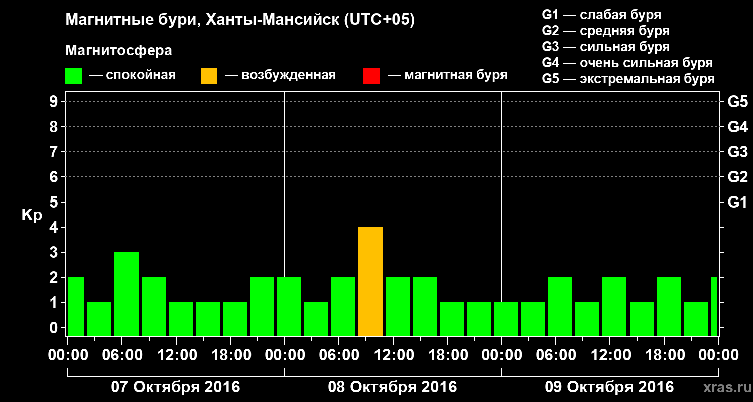 Магнитные бури в Ханты-Мансийске 9 октября 2016 года