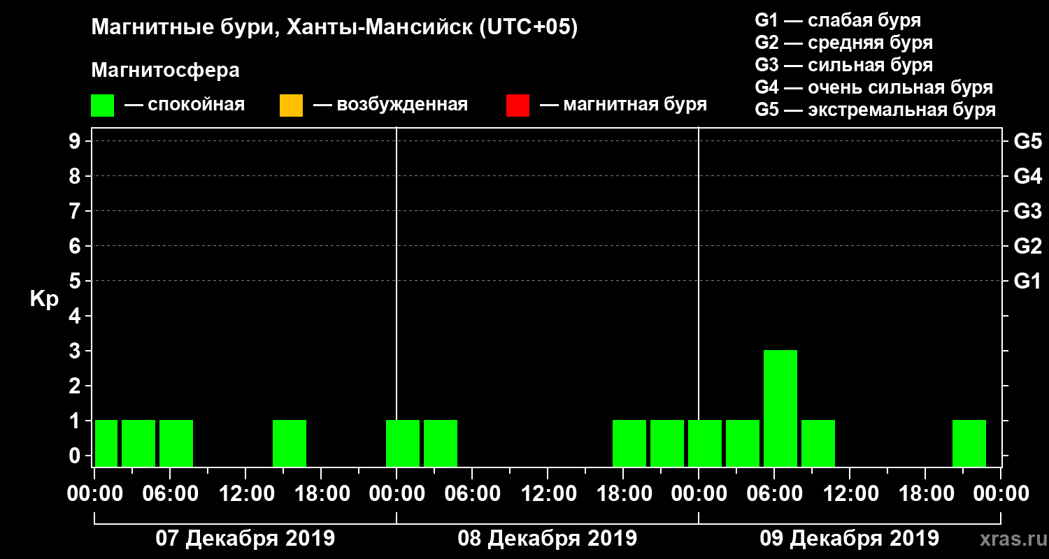 Магнитные бури в Ханты-Мансийске 9 декабря 2019 года