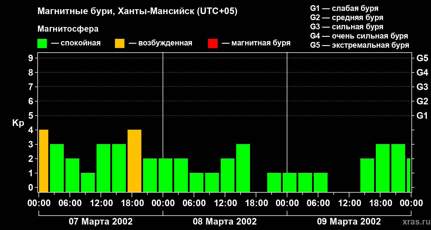Магнитные бури в Ханты-Мансийске 9 марта 2002 года