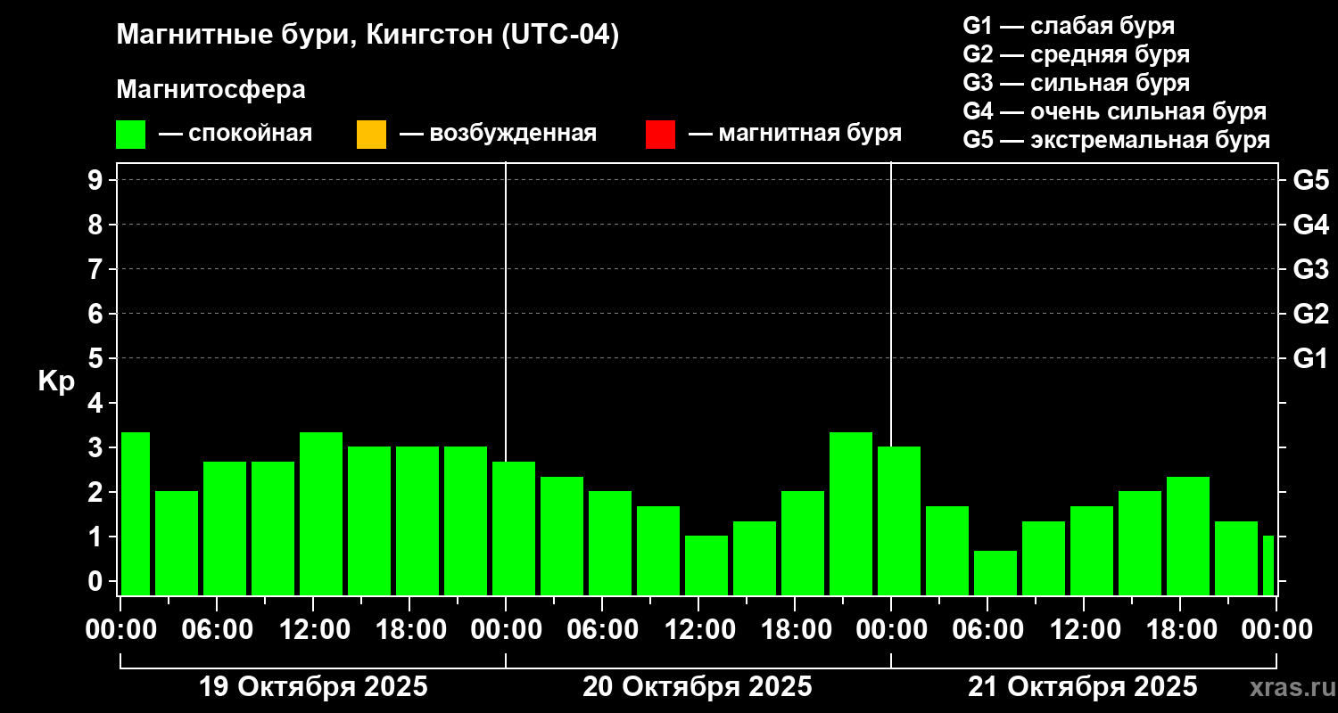 Магнитные бури в Кингстоне — 21 октября 2025 года