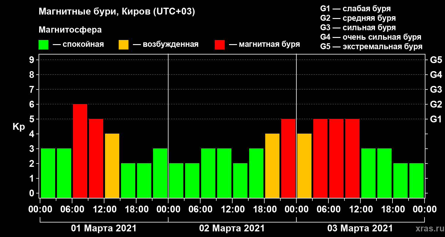 Магнитные бури в Кирове 3 марта 2021 года
