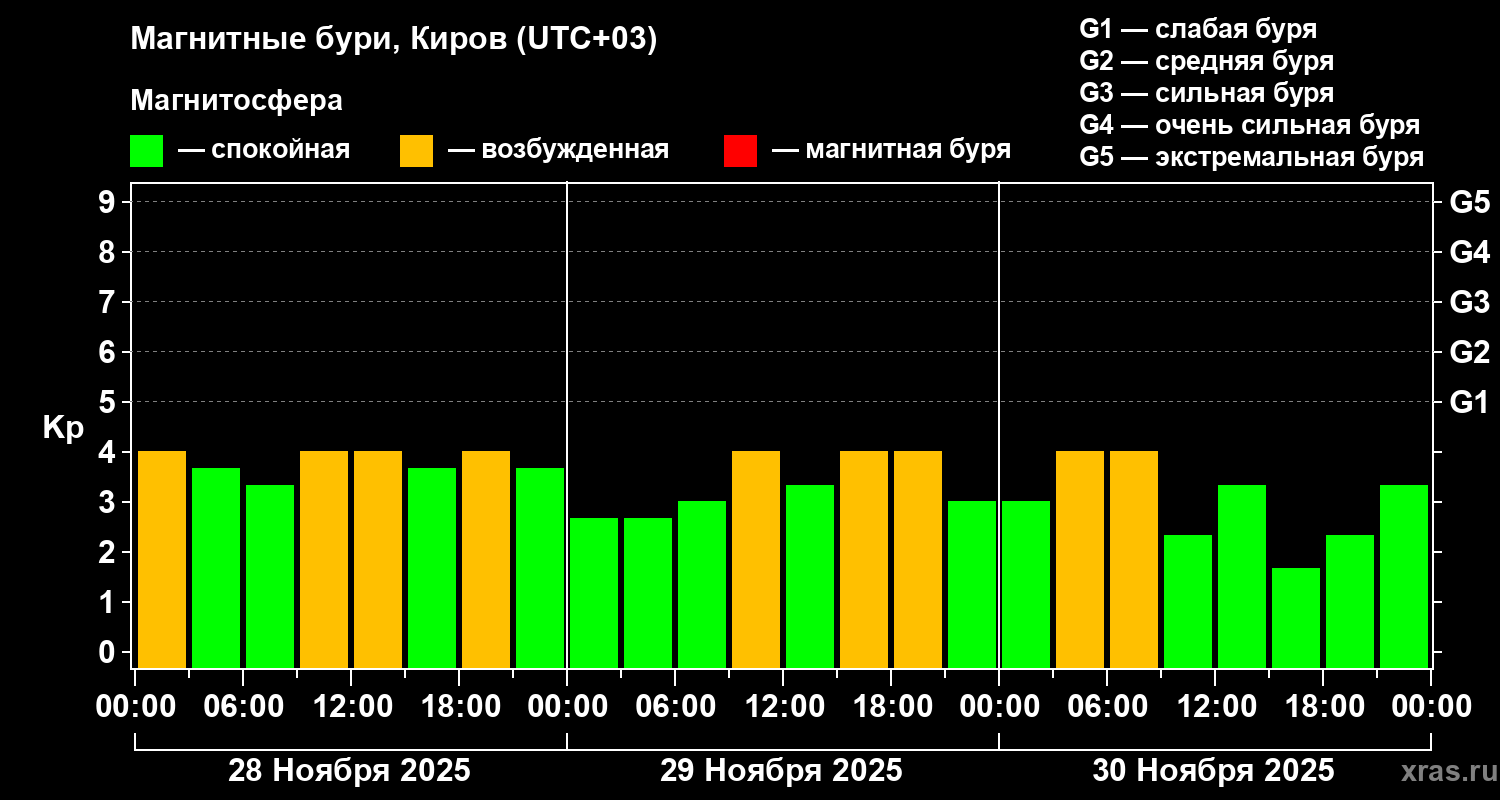 Магнитные бури в Кирове — 30 ноября 2025 года