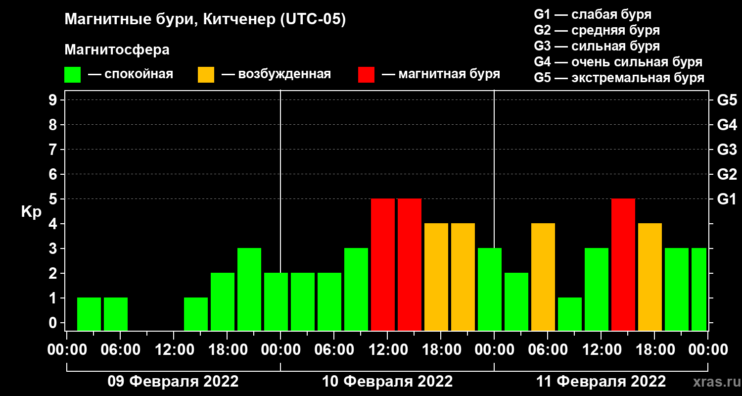 Магнитные бури в Китченере 11 февраля 2022 года