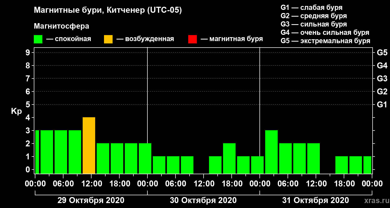 Магнитные бури в Китченере 31 октября 2020 года