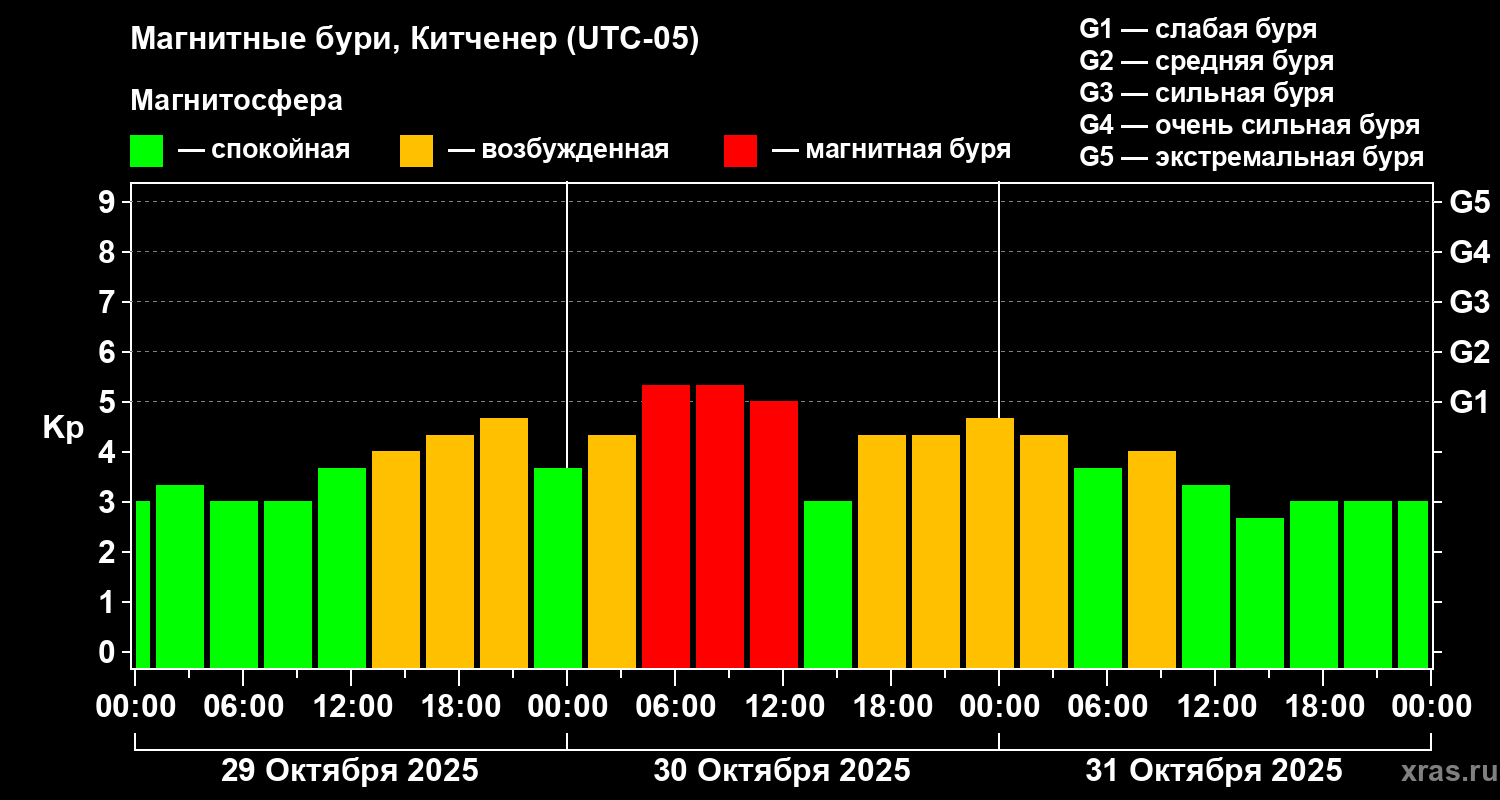 Магнитные бури в Китченере — 31 октября 2025 года