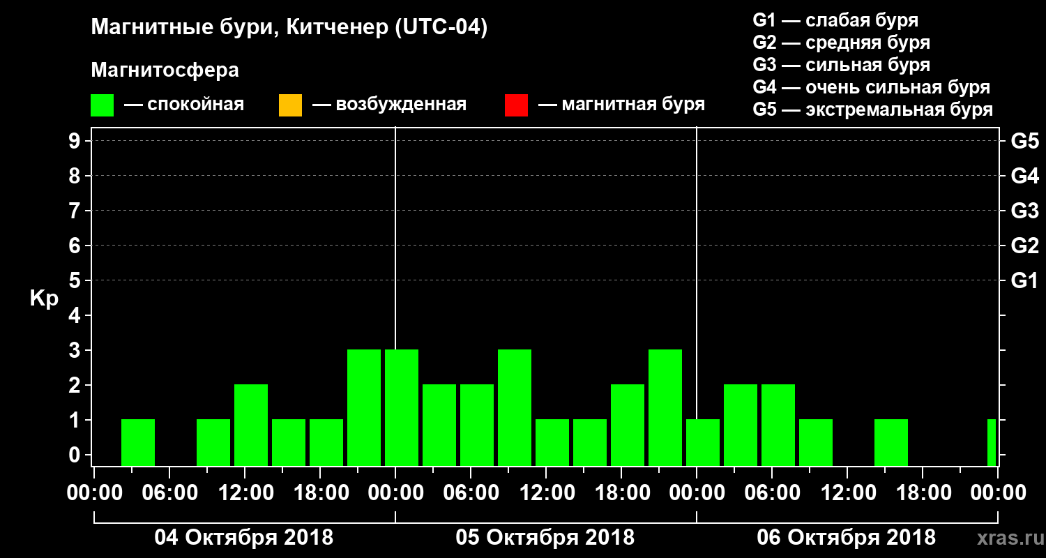 Изменения геомагнитного индекса Kp с 4 по 6 октября 2018 года для средних широт