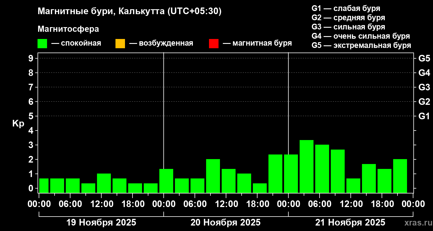 Магнитные бури в Калькутте — 21 ноября 2025 года