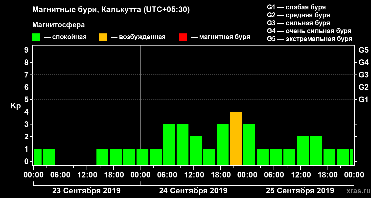 Магнитные бури в Калькутте 25 сентября 2019 года