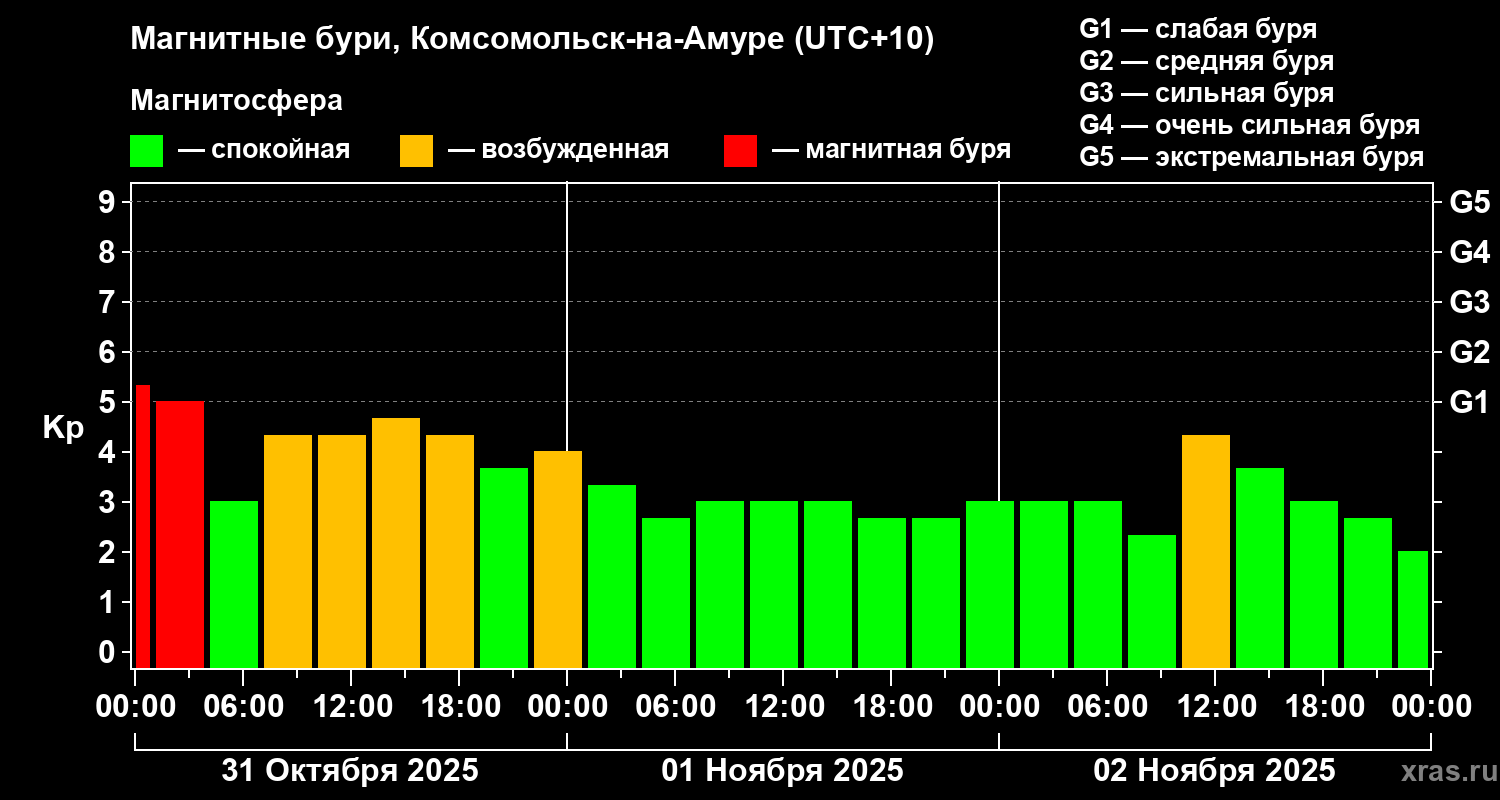 Магнитные бури в Комсомольск-на-Амуре — 2 ноября 2025 года