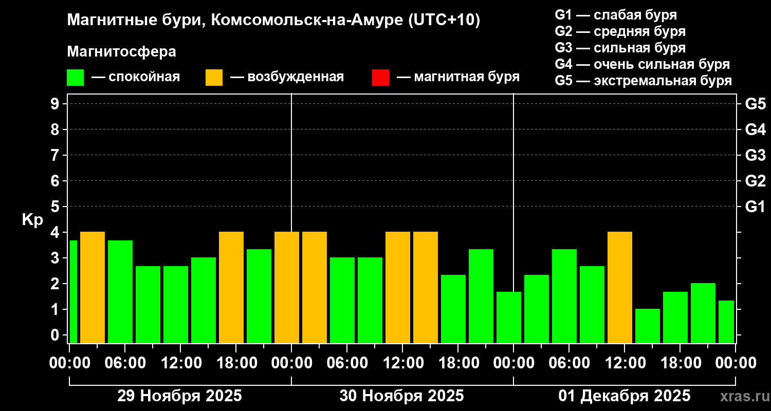 Магнитные бури в Комсомольск-на-Амуре — 1 декабря 2025 года
