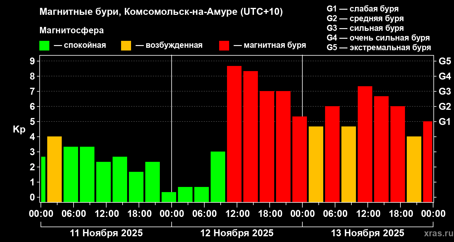 Магнитные бури в Комсомольск-на-Амуре — 13 ноября 2025 года