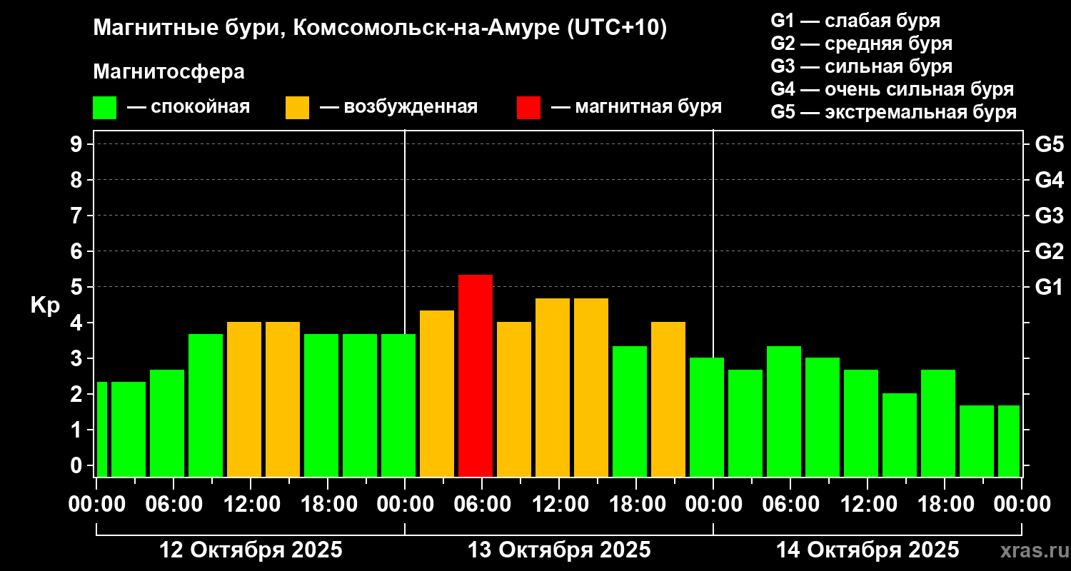 Магнитные бури в Комсомольск-на-Амуре — 14 октября 2025 года
