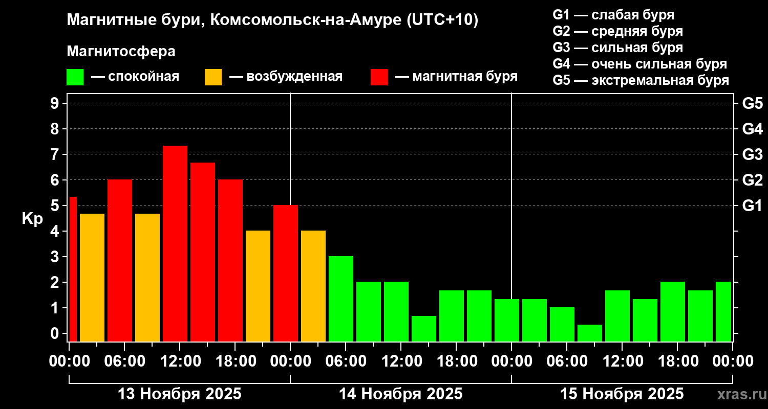 Магнитные бури в Комсомольск-на-Амуре — 15 ноября 2025 года