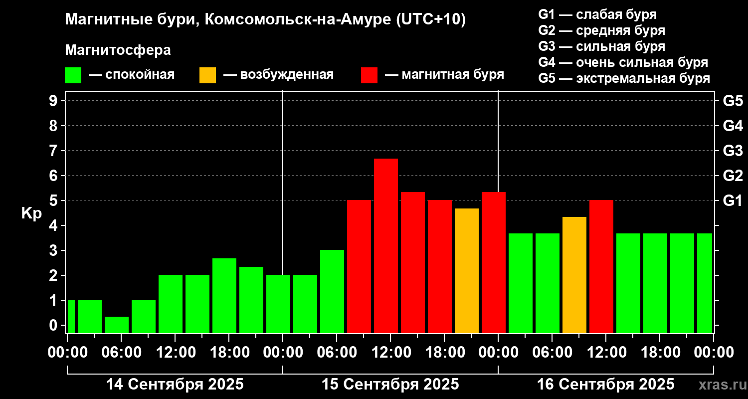 Магнитные бури в Комсомольск-на-Амуре — 16 сентября 2025 года