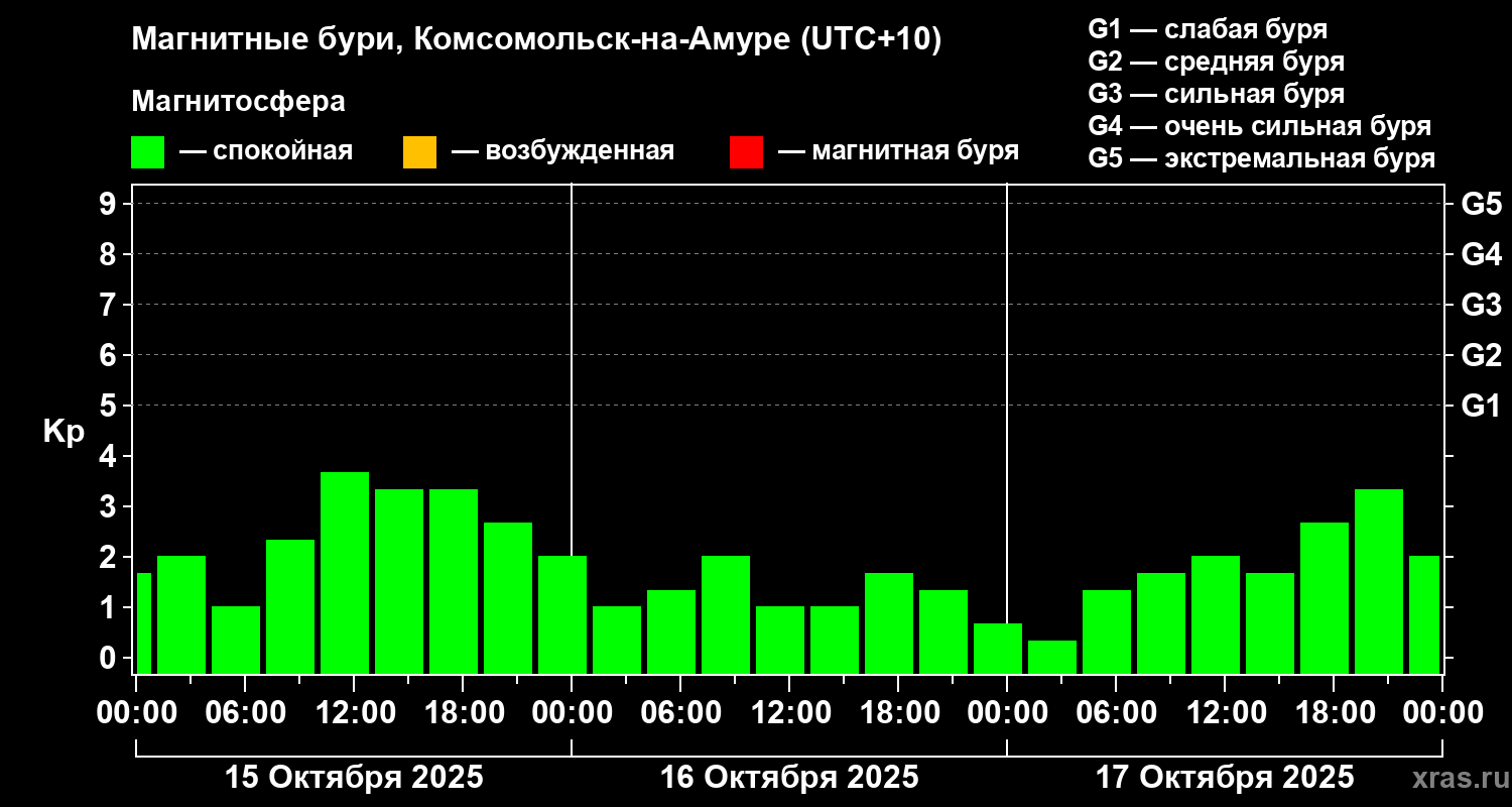 Магнитные бури в Комсомольск-на-Амуре — 17 октября 2025 года