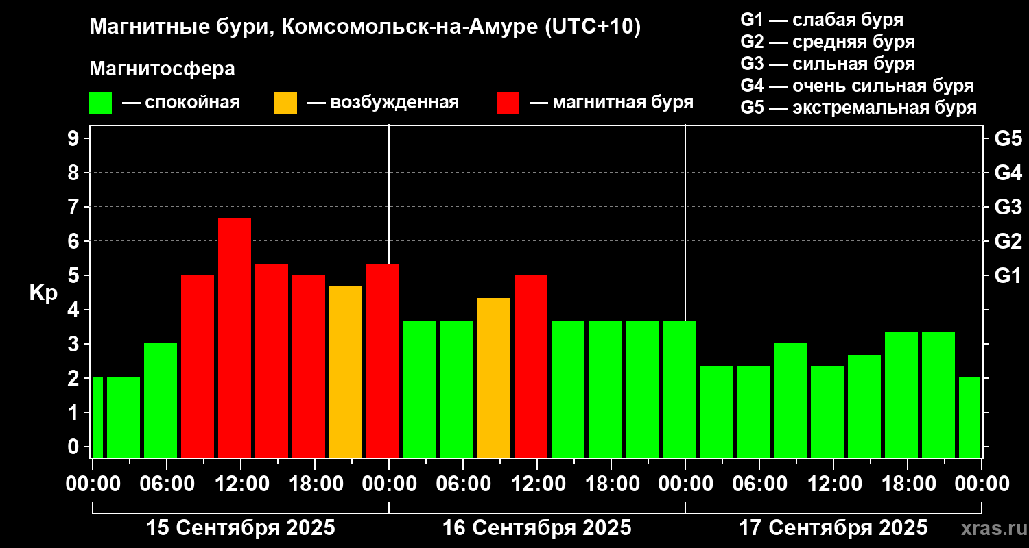 Магнитные бури в Комсомольск-на-Амуре — 17 сентября 2025 года