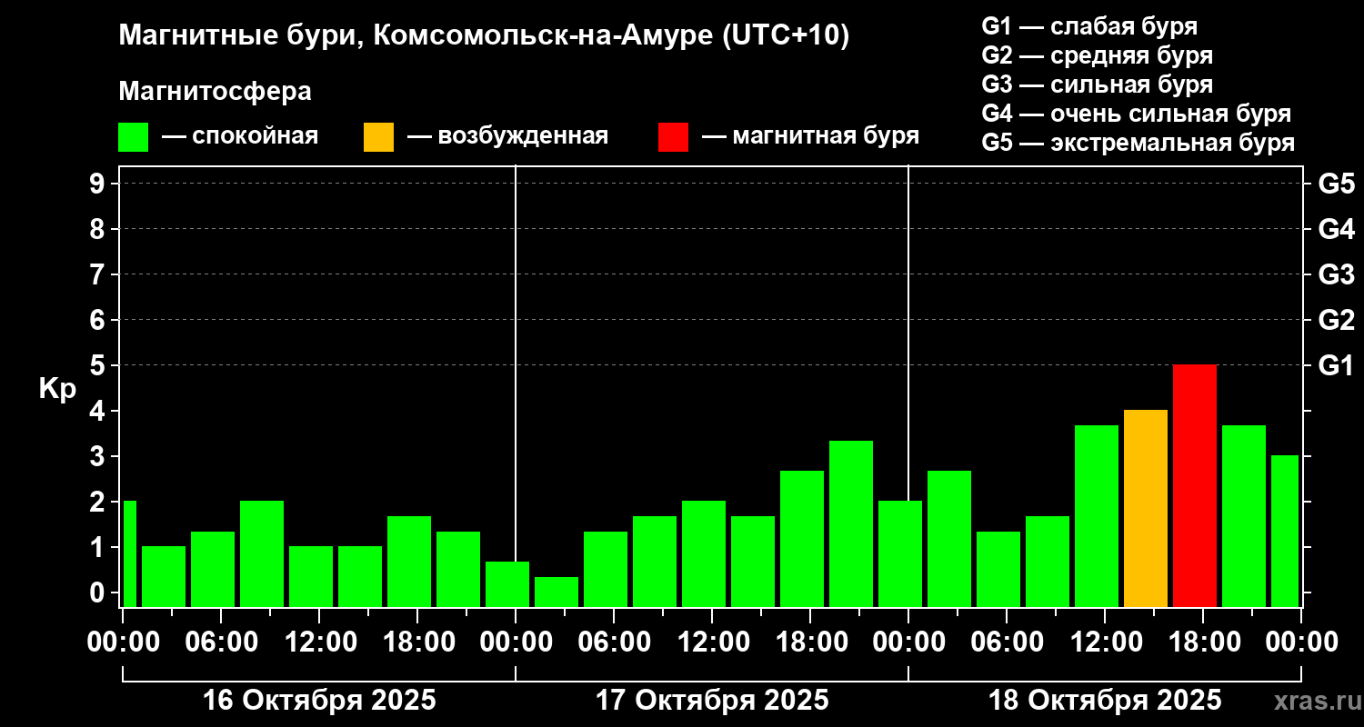 Магнитные бури в Комсомольск-на-Амуре — 18 октября 2025 года