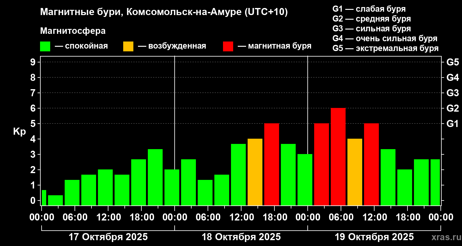 Магнитные бури в Комсомольск-на-Амуре — 19 октября 2025 года