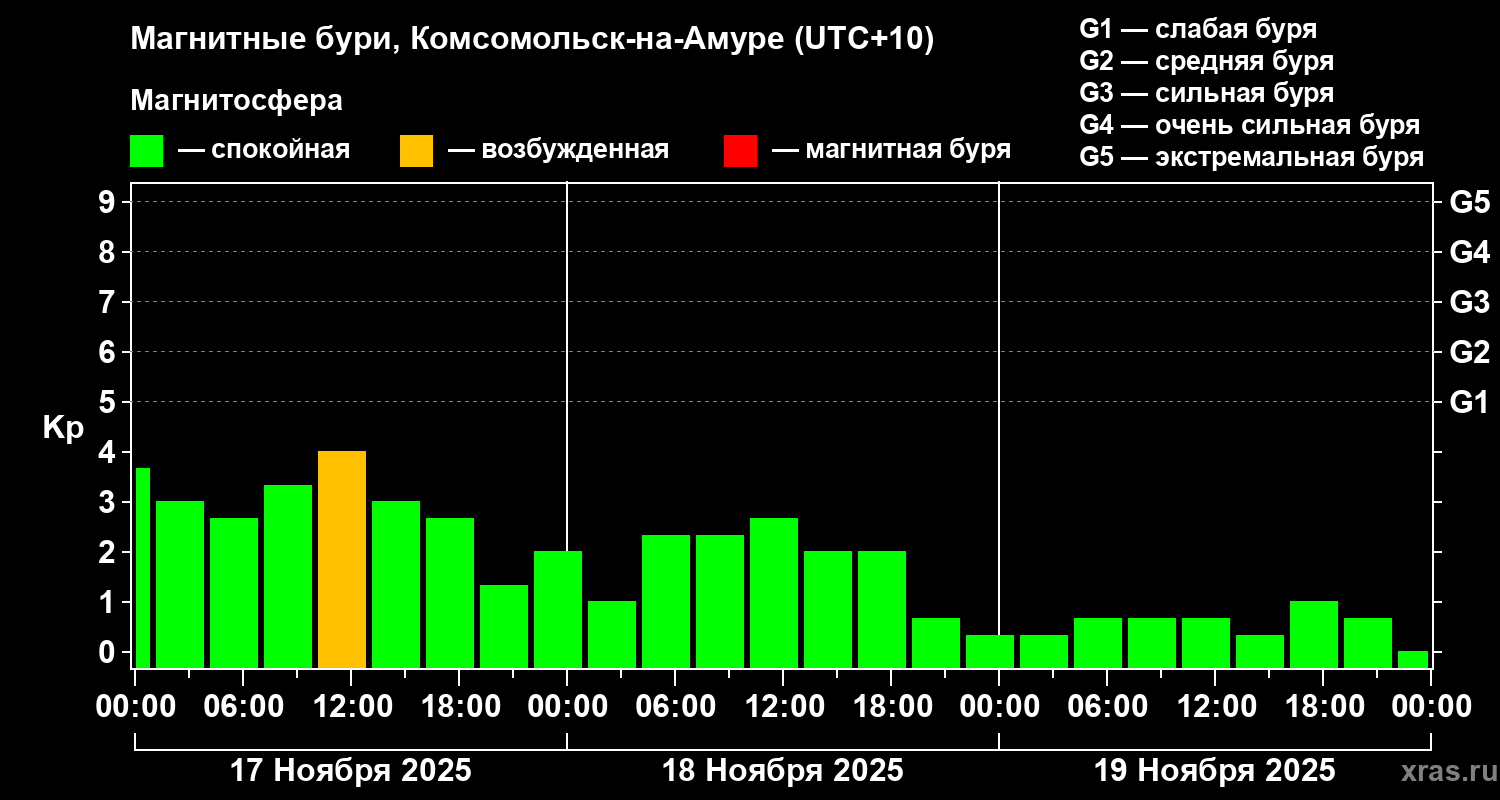Магнитные бури в Комсомольск-на-Амуре — 19 ноября 2025 года
