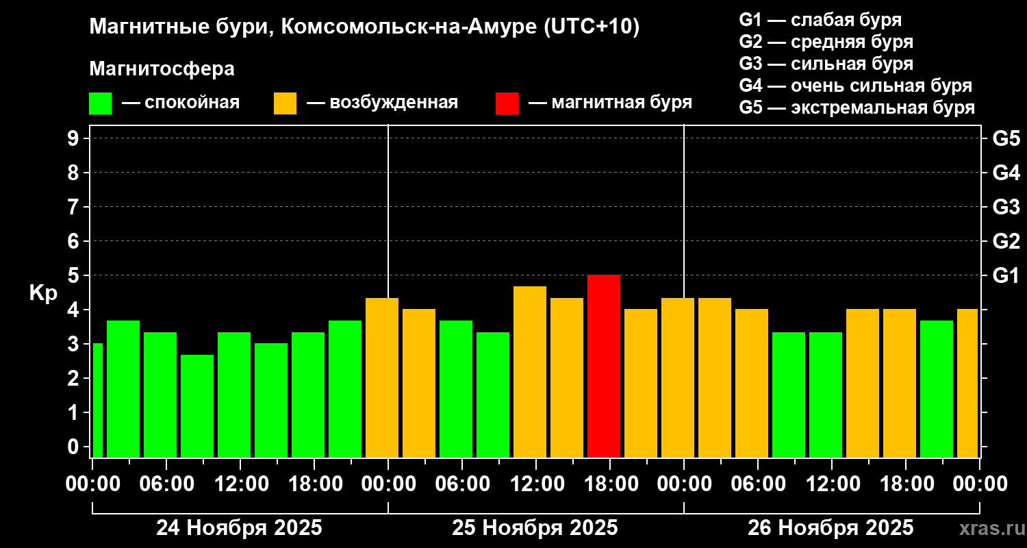 Магнитные бури в Комсомольск-на-Амуре — 26 ноября 2025 года