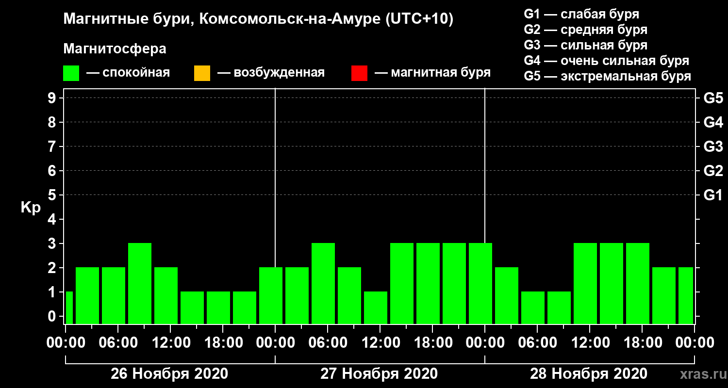 Магнитные бури в Комсомольск-на-Амуре — 28 ноября 2020 года