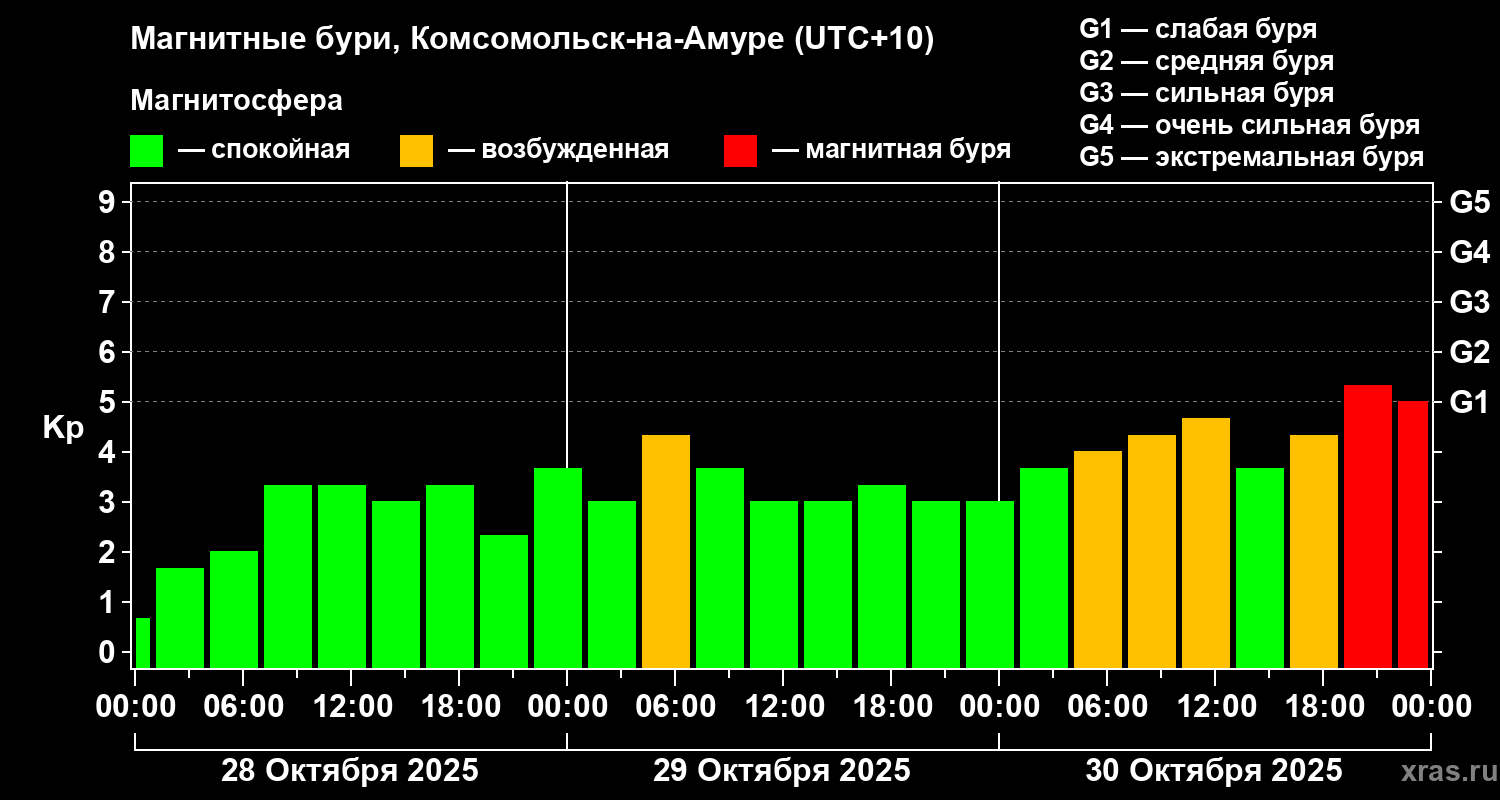 Магнитные бури в Комсомольск-на-Амуре — 30 октября 2025 года