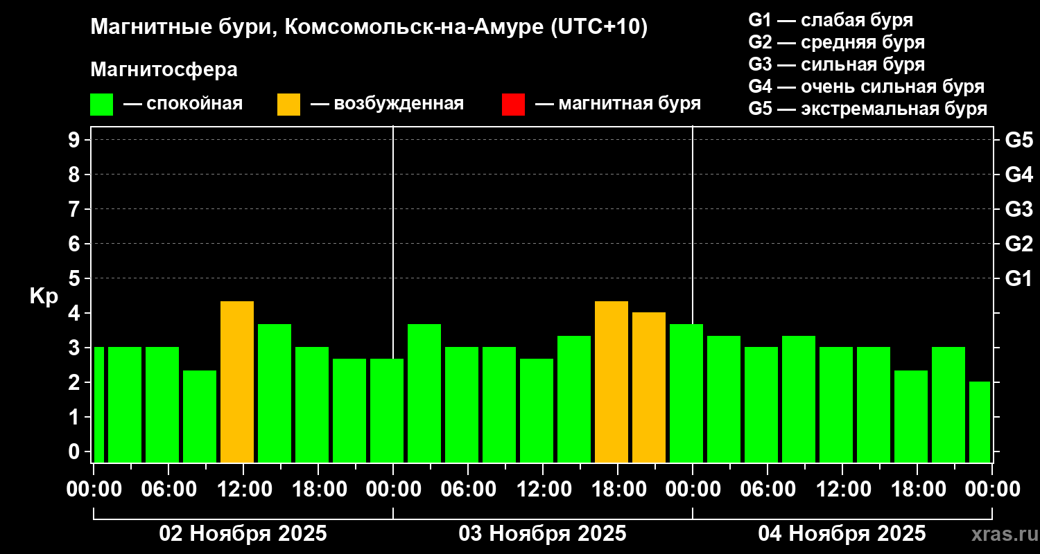 Магнитные бури в Комсомольск-на-Амуре — 4 ноября 2025 года