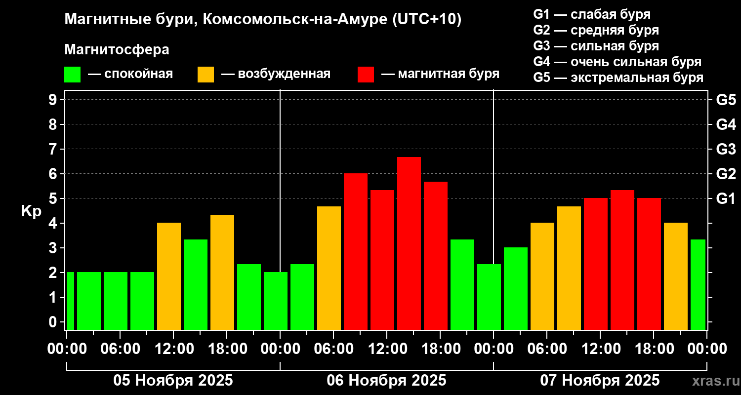 Магнитные бури в Комсомольск-на-Амуре — 7 ноября 2025 года