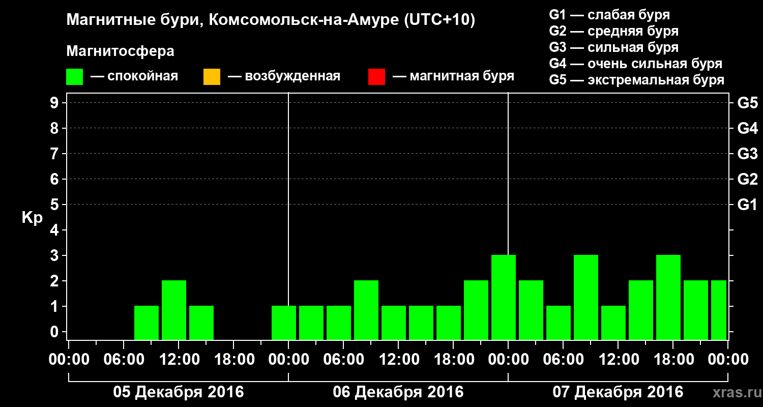 Магнитные бури в Комсомольск-на-Амуре — 7 декабря 2016 года