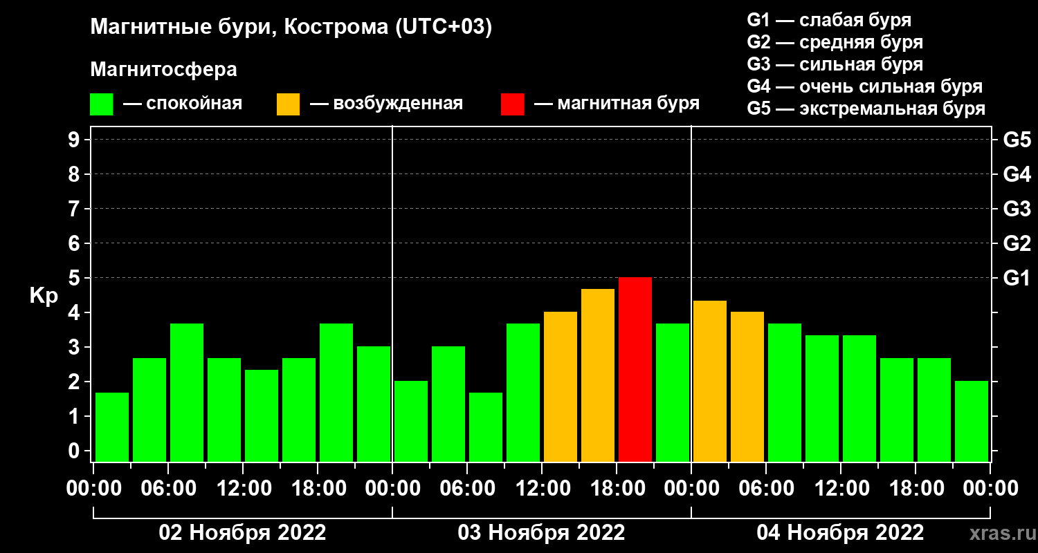 Магнитные бури в Костроме 4 ноября 2022 года