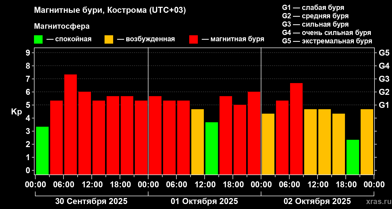 Магнитные бури в Костроме — 2 октября 2025 года