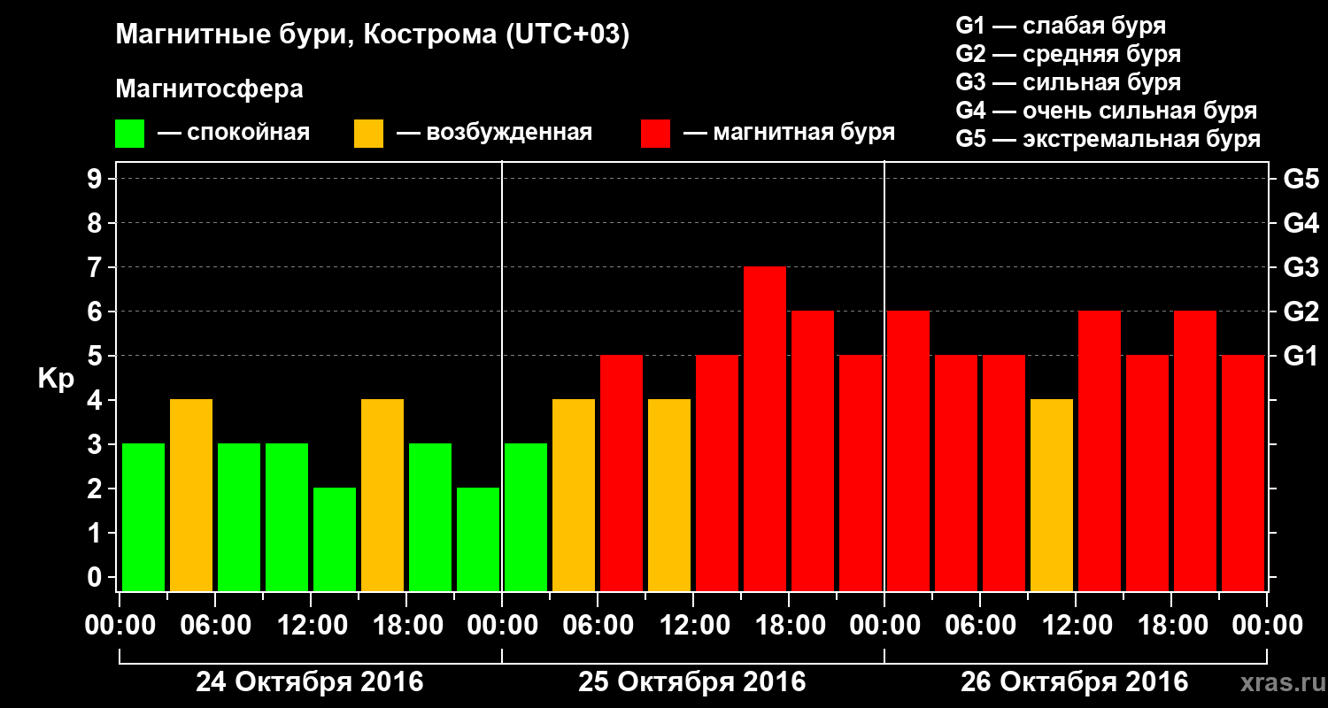 Магнитные бури в Костроме в октябре 2016 года