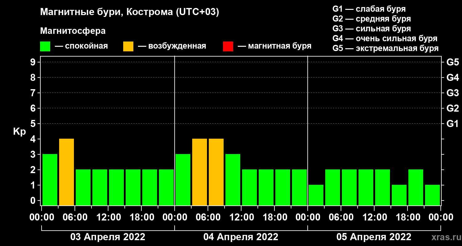 Магнитные бури в Костроме 5 апреля 2022 года