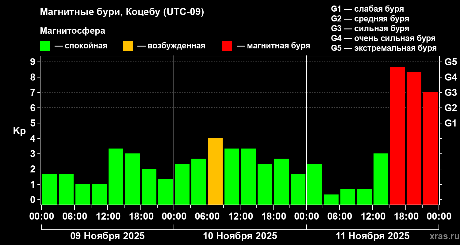 Магнитные бури Коцебу — 11 ноября 2025 года