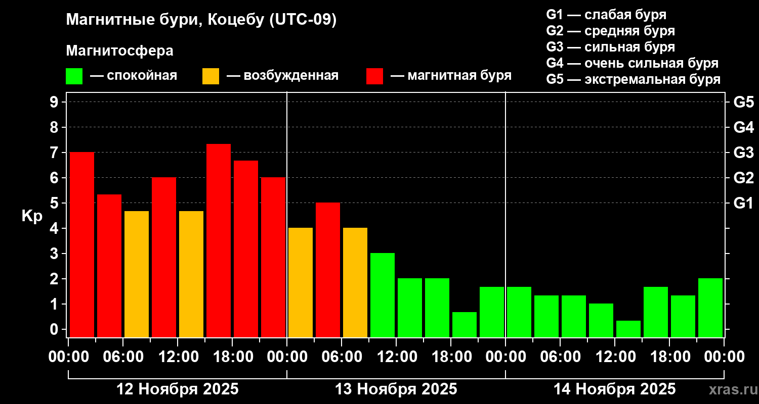 Магнитные бури Коцебу 14 ноября 2025 года
