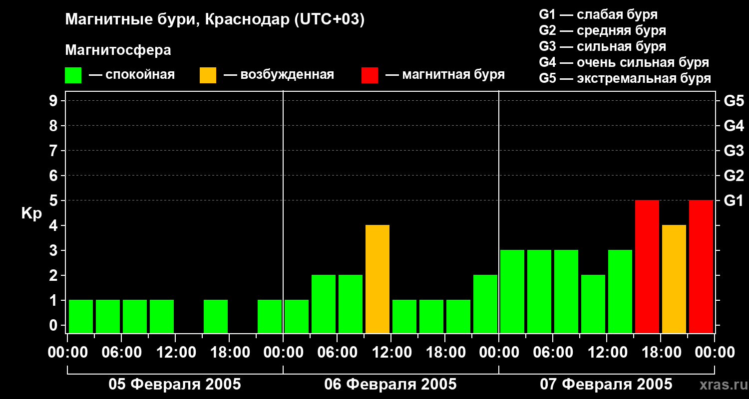 Магнитные бури в Краснодаре — 7 февраля 2005 года