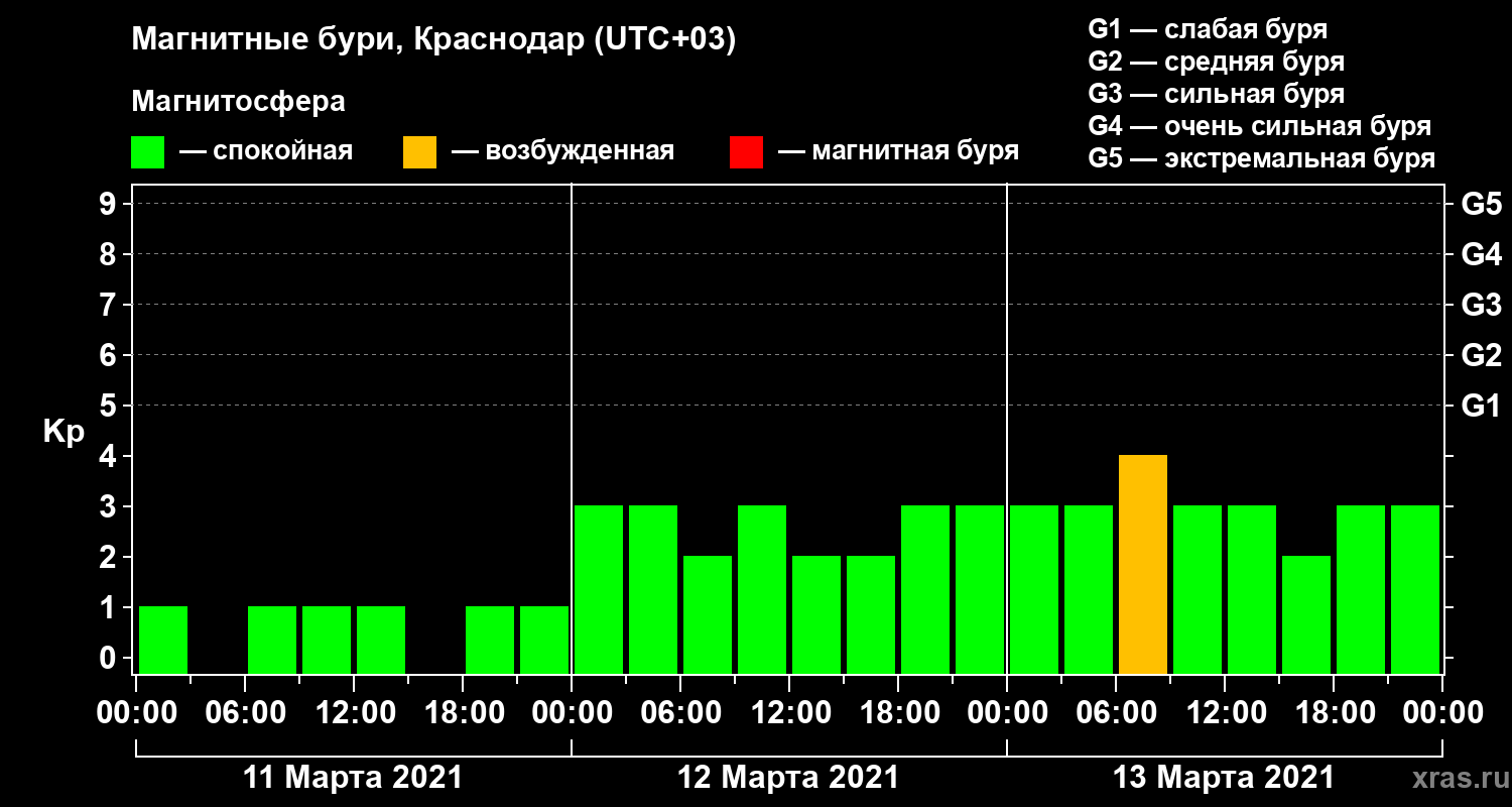 Магнитные бури в Краснодаре 13 марта 2021 года