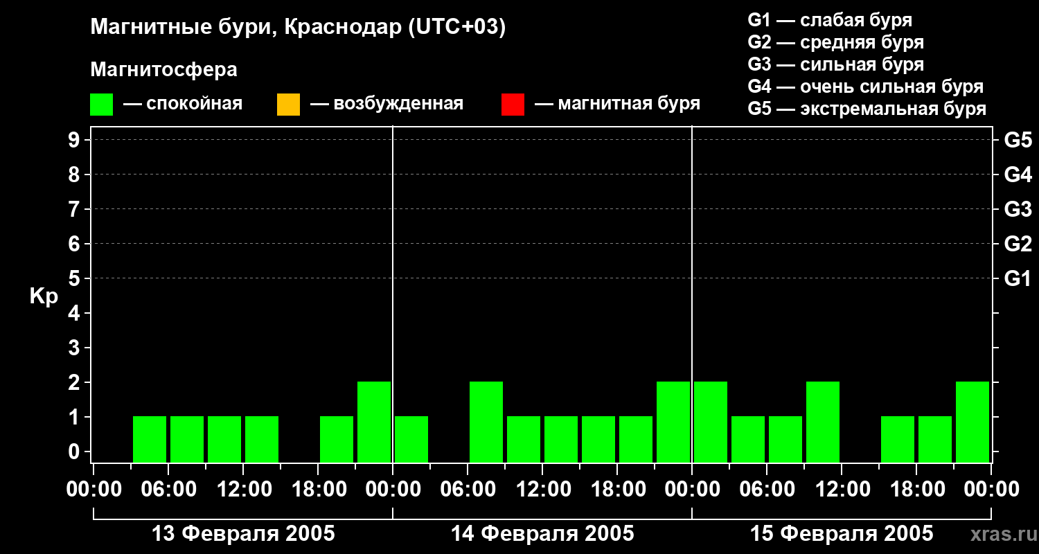 Магнитные бури в Краснодаре — 15 февраля 2005 года